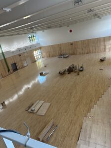 体育館のフローリング貼りをしました。1日目2日目3日目3日目に協力会社に応援来てもらい結構進んだのであとは従業員と2人で頑張ります!